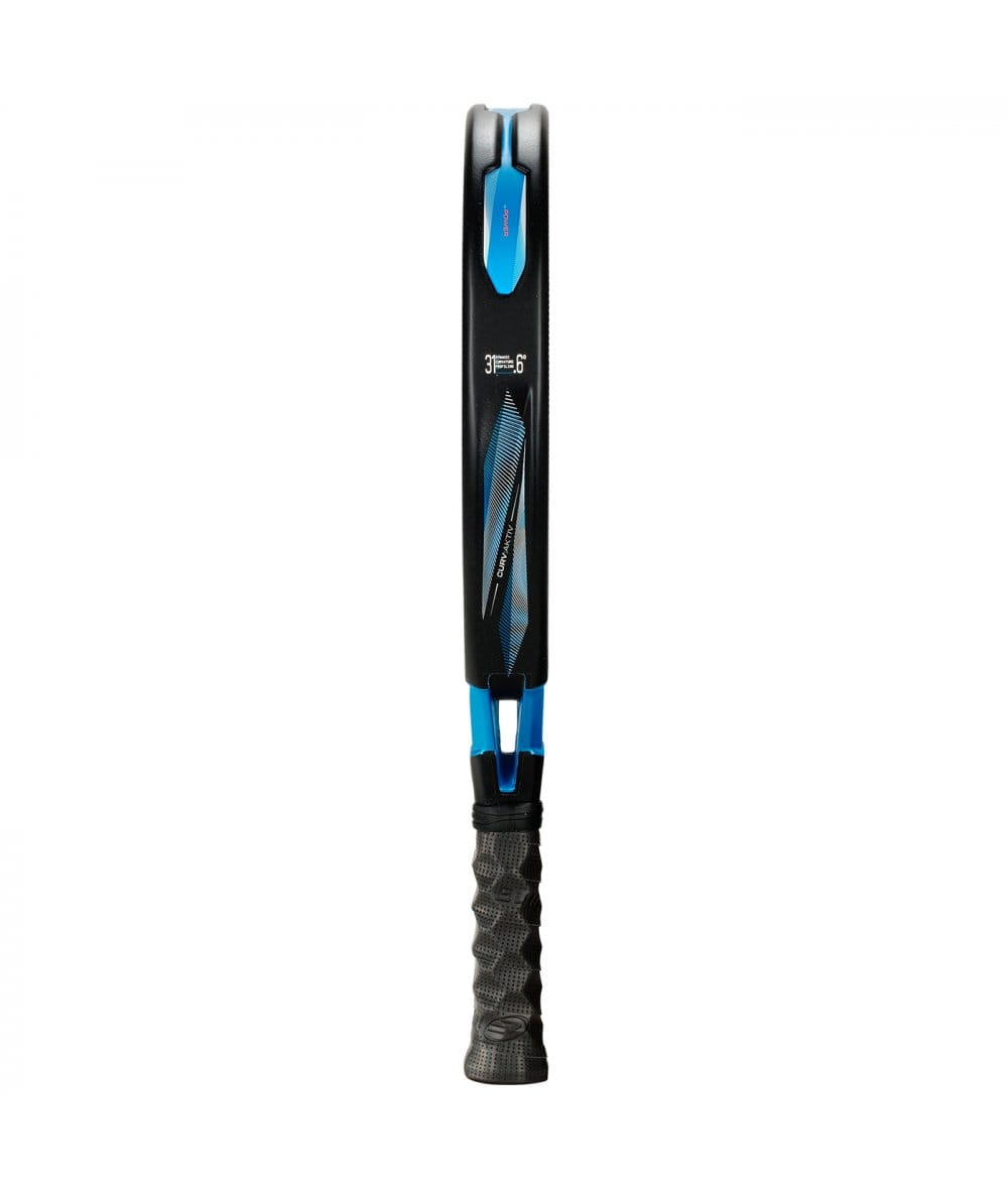 The Vertex 05 Hybrid 2025 fuses raw attacking intent with refined handling. Featuring a hybrid head for power but engineered with control in mind, it brings enhanced manoeuvrability without sacrificing depth. The 38 mm frame profile (thick edge), combined with Xtend-Carbon 12K, ensures explosive ball response and durability. At a well-played 365–375 g and a measured 25.4 cm balance, it remains head-heavy but won’t curb your reaction speed.