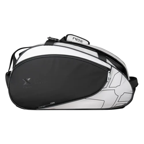 The NOX Luxury Master Series White/Black 2024 Padel Bag combines premium style with serious practicality. Built with lightweight, high-resistance technical materials, it features a 60L capacity, a ThermoTech thermal compartment, a ventilated shoe tunnel, and smart organiser pockets — ideal for players who want to carry everything comfortably and in style.