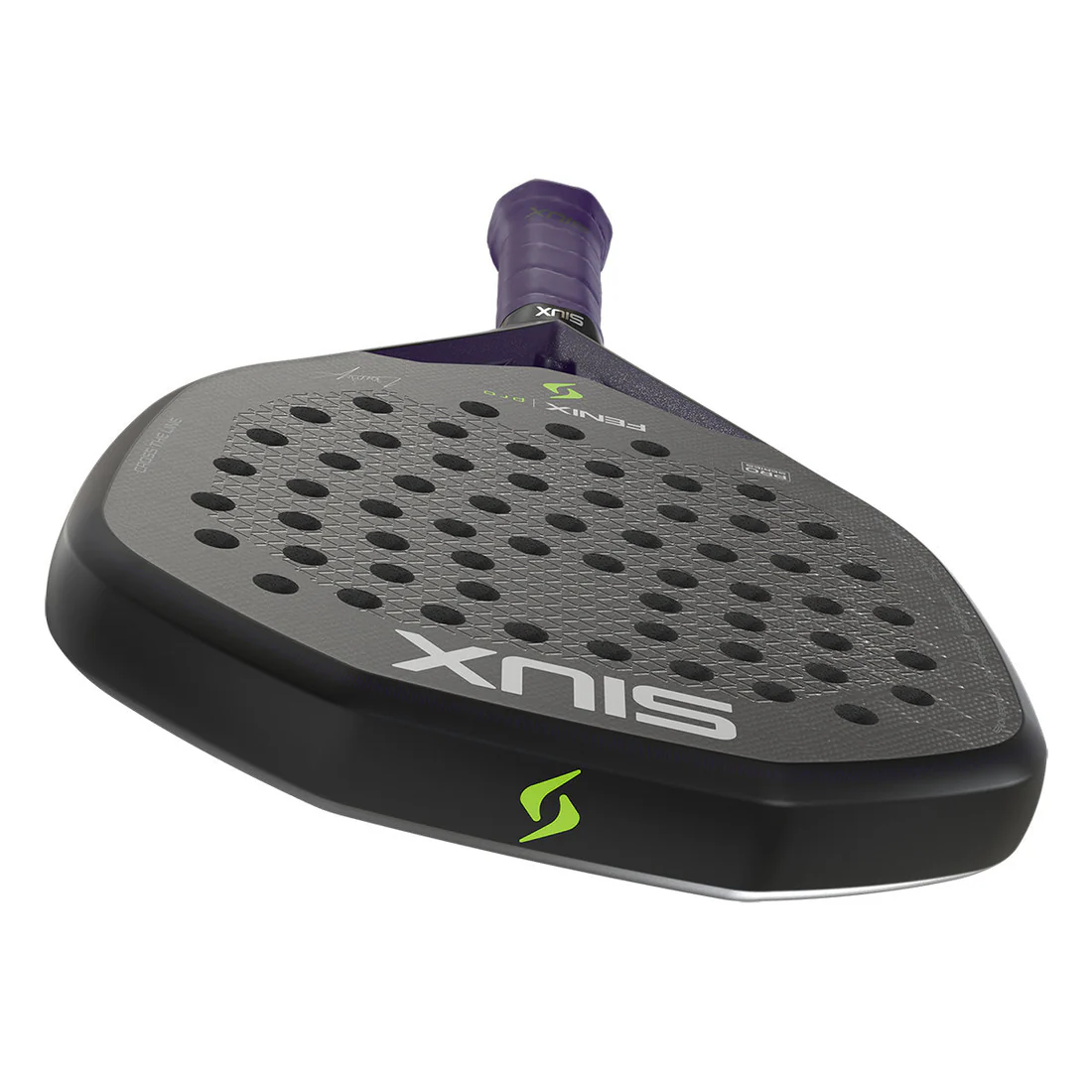 Siux Fenix Pro Black 2026 — a diamond-shaped, head-heavy padel racket built for aggressive, offensive play. Hard EVA core and 18K carbon face deliver powerful smashes and confident volleys — ideal for intermediate/advanced players craving strong powerful performance.